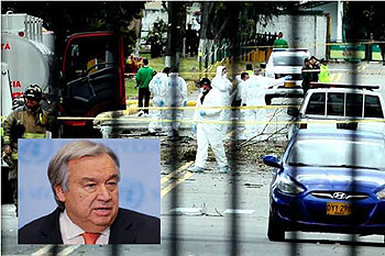 Nazioni Unite, 18 gen (Prensa Latina) Il segretario generale dell'ONU, Antonio Guterres, ha condannato oggi l'attentato con un’auto bomba accaduto giovedì in un'accademia di polizia nella capitale colombiana.