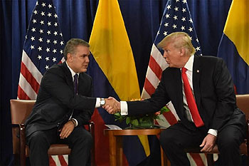 Lo statista repubblicano ha ricevuto questo mercoledì alla Casa Bianca il suo collega colombiano che si trova in visita a Washington per appoggiare posizioni nell’attuale crociata contro Venezuela; secondo fonti anonime il paese sud americano è stato il tema principale delle conversazioni.