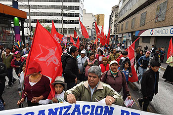 Tuttavia, dopo un percorso, che è partito dalla Piazza de El Alborito ed ha continuato sul viale 10 agosto fino ad arrivare al centro storico della capitale, avvicinandosi al Palazzo di Carondelet, sede della presidenza della Repubblica, i manifestanti hanno incontrato barriere della polizia che hanno ostacolato loro il passaggio.