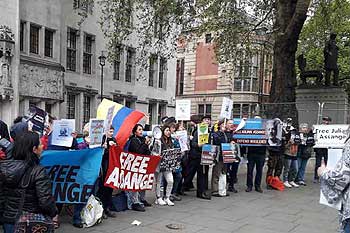 “Una sola decisione, no all’estradizione”, hanno gridato i simpatizzanti del giornalista australiano, da un angolo della piazza del Parlamento Britannico, dove si trova anche la Corte Suprema di Giustizia.