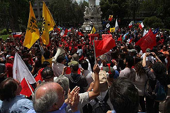 Santiago del Cile, 11 nov (Prensa Latina) Centinaia di manifestanti sono entrati oggi ai giardini dell'antico Congresso Nazionale, in questa capitale, per reclamare una nuova Costituzione e miglioramenti sociali ed economici per le grandi maggioranze.