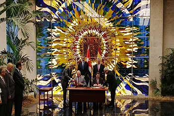 L’Accordo per la Cornice di Associazione Paese Cuba Spagna 2019-2022 in materia di Cooperazione Internazionale per lo Sviluppo, è stata sottoscritta nel Palazzo della Rivoluzione dai cancellieri Bruno Rodriguez e Josep Borrell.