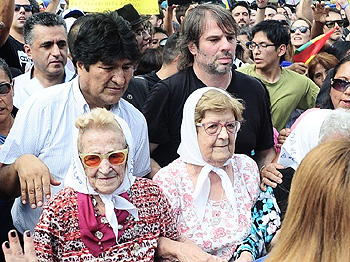 Buenos Aires, 26 dic (Prensa Latina) Ai piedi della piramide situata nella Piazza di Maggio, testimone di tante lotte in Argentina, il presidente legittimo boliviano Evo Morales ha accompagnato oggi la marcia numero 2176 di quelle madri che continuano a chiedere giustizia per i desaparecidos dell'ultima dittatura militare (1976-1983).