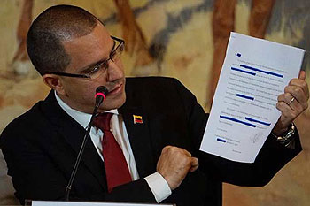Dalla Casa Amarilla (sede della Cancelleria), Arreaza ha denunciato una nota diplomatica emessa dal governo statunitense per varie cancellerie del mondo lo scorso 17 dicembre, col fine di cercare appoggio internazionale per sabotare ed intervenire nelle elezioni parlamentari.