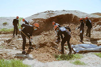 La fossa è una di varie scoperte fino al momento e dalle quali si estrassero i corpi di migliaia di militari e civili uccisi dall’Isis durante la sua occupazione di zone estese delle province di Raqa ed Aleppo.