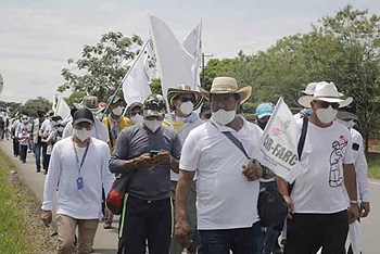 La manifestazione è iniziata il 21 ottobre a Mesetas, dipartimento di Meta, a 250 chilometri a sud di Bogotà, per esigere al governo del presidente Ivan Duque che ponga fine agli omicidi di leader sociali, ex guerriglieri, indigeni, contadini e membri di altri settori vittime della crescente violenza registrata nel paese.