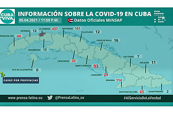 L'Avana, 6 apr (Prensa Latina) Cuba ha registrato oggi per l'ottavo giorno consecutivo più di mille nuovi casi della COVID-19, dopo la diagnosi nelle ultime 24 ore di 1030 persone con la malattia.