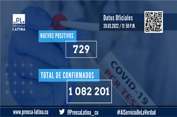 L'Avana, 21 mar (Prensa Latina) Cuba ha registrato oggi 729 nuovi casi della COVID-19 e, sebbene siano 55 in meno rispetto al giorno precedente, la nazione ha dimostrato un leggero aumento del numero di contagiati nell'ultima settimana, hanno riferito le autorità sanitarie.
