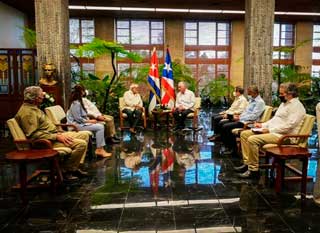 La delegazione portoricana, ricevuta al Palazzo della Rivoluzione, era guidata dal co-presidente del MINH, Julio Muriente.