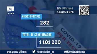 L'Avana, 22 apr (Prensa Latina) Cuba ha registrato oggi 282 nuovi casi positivi del SARS-CoV-2, il virus che causa la COVID-19, fatto che rappresenta una diminuzione di 47 rispetto al giorno precedente e un deceduto.