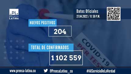 L'Avana, 28 apr (Prensa Latina) Il Ministero della Salute Pubblica cubano (MINSAP) ha riferito oggi che nelle ultime ore sono state diagnosticate 204 persone con COVID-19 e nessun paziente è morto a causa della pandemia.