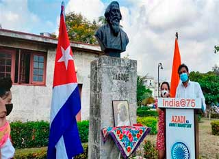 Il capo missione ha diretto la celebrazione del 161° anniversario della nascita di Tagore davanti al suo monumento presso l’ingresso della Baia de L’Avana, a cui hanno anche partecipato gli scolari cubani dell’aula speciale del museo Casa dell’Asia dell’Ufficio dello Storico de L’Avana.