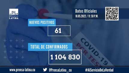 L'Avana, 19 mag (Prensa Latina) Cuba ha annunciato 61 nuovi casi della COVID-19 e 110 dimissioni mediche, una cifra che aumenta a un 1.095.895 recuperati, il 99,2% di tutte le persone con diagnosi dal marzo del 2020.