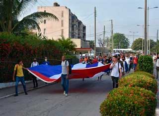 Successivamente, è iniziata una marcia simbolica attraverso le strade principali della città di Santa Clara, fino ad arrivare al complesso scultoreo che contiene le nicchie di Che Guevara insieme ai suoi compagni caduti nella guerriglia latinoamericana in Bolivia nel 1967.