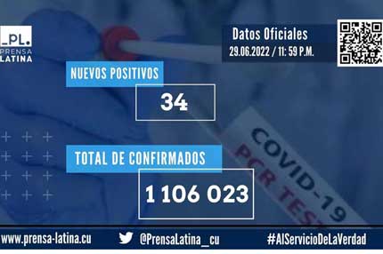 L'Avana, 30 giu (Prensa Latina) Cuba ha riportato oggi 34 nuovi casi positivi di SARS-CoV-2, il virus che causa la COVID-19, 30 persone dimesse e nessun decesso.