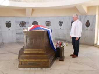 Santiago de Cuba, 6 lug (Prensa Latina) Il Primo Segretario del Partito e Presidente della Repubblica, Miguel Díaz-Canel, visita oggi questa città, dove ha reso omaggio, nelle prime ore del mattino, agli eroi dell'indipendenza nel cimitero di Santa Ifigenia.
