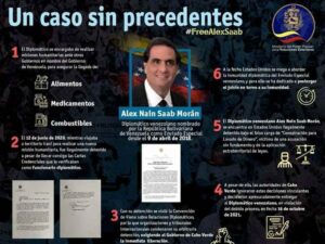 L’ambasciata venezuelana ha pubblicato una cronologia degli eventi legati a Saab ed ha invitato a diffondere messaggi, foto, video e tweet a sostegno della causa.