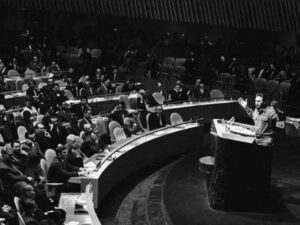 La sua presenza all’ONU è stato il momento più opportuno per illuminare il mondo sulla realtà della giovane Rivoluzione trionfante di fronte alle campagne -che fino ad oggi non sono cessate- per screditarla, nonché alla denuncia delle continue aggressioni degli Stati Uniti nel loro desiderio di mantenere il loro dominio sull’isola.