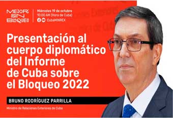 Il ministro delle Relazioni Internazionali, Bruno Rodríguez, presenterà domani il rapporto sul bloqueo statunitense contro l'isola al corpo diplomatico accreditato a Cuba, ha comunicato oggi su Twitter il ministero delle Relazioni Internazionali.