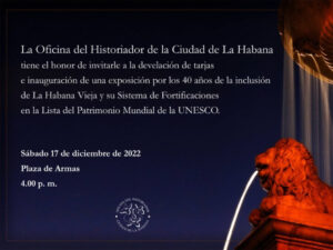 Il programma delle attività prevede l’inaugurazione di una mostra di tele alle porte del Castillo de La Real Fuerza, prevista per il 17 dicembre, che poi toccherà altre città patrimonio di Cuba e del mondo.