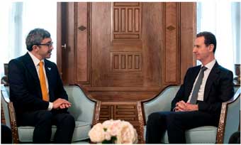 Damasco, 4 gen (Prensa Latina) Il presidente siriano Bashar al-Assad ha incontrato oggi nella capitale il ministro degli Affari Esteri e della Cooperazione Internazionale degli Emirati Arabi Uniti (Eau), lo sceicco Abdullah bin Zayed Al Nahyan.