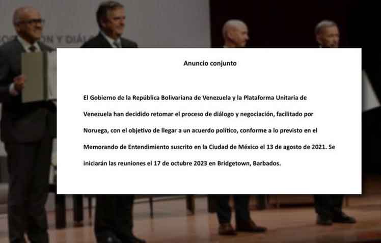 Questi colloqui mireranno a raggiungere “un accordo politico”, come previsto nel Memorandum d’Intesa firmato a Città del Messico il 13 agosto 2021.