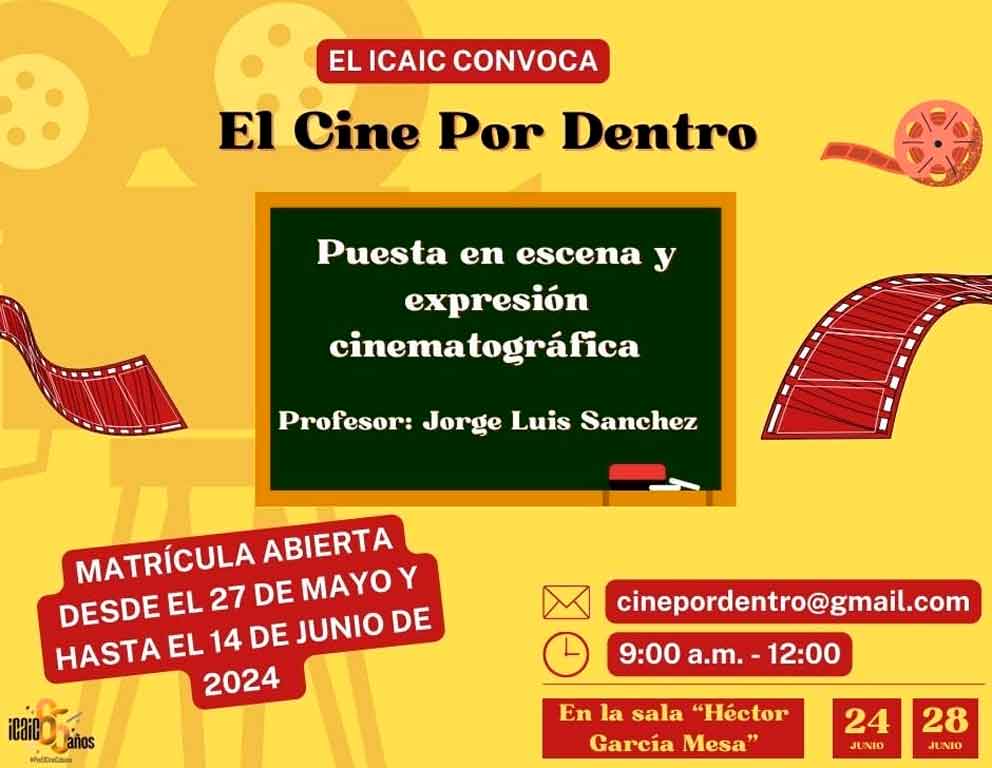 L'Avana, 31 mag (Prensa Latina) L'Istituto Cubano di Arte e Industria Cinematografica (Icaic) convoca oggi al programma teorico-pratico “El cine por dentro”, a sostegno della formazione di studenti e laureati in carriere legate all'industria cinematografica.