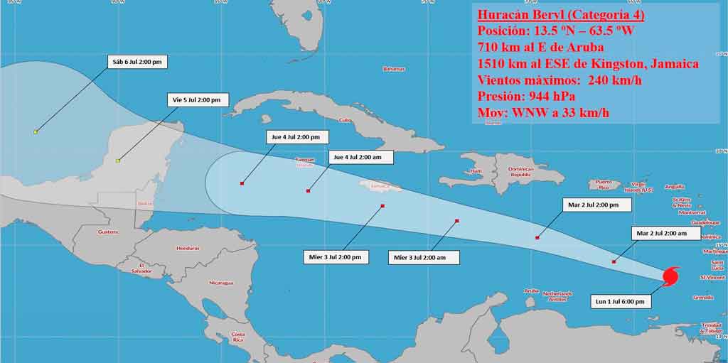 L’uragano Beryl è diventato il più intenso registrato nel mese di giugno nel bacino tropicale dell’Atlantico e, secondo il professor Luis Enrique Ramos, coordinatore della Commissione di Storia della Società Meteorologica di Cuba, attira l’attenzione per la sua rapida intensificazione.