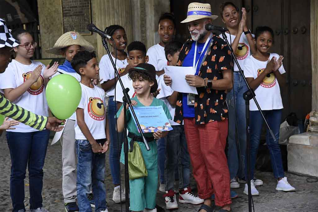 Al gala di apertura nella Plaza de Armas, a L’Avana Vecchia, si sono riuniti i bambini della compagnia cubana “Cascabelito”, coro che detiene il Premio Nazionale di Cultura Comunitaria.
