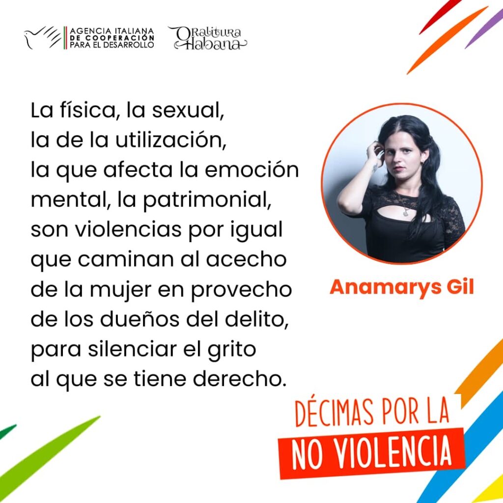 I suoi organizzatori sottolineano che questa campagna si distingue per il protagonismo dei giovani repentitisti cubani e delle giovani repentitiste cubane, che, attraverso il linguaggio tradizionale delle decime, trasmettono potenti messaggi in rifiuto alla violenza.