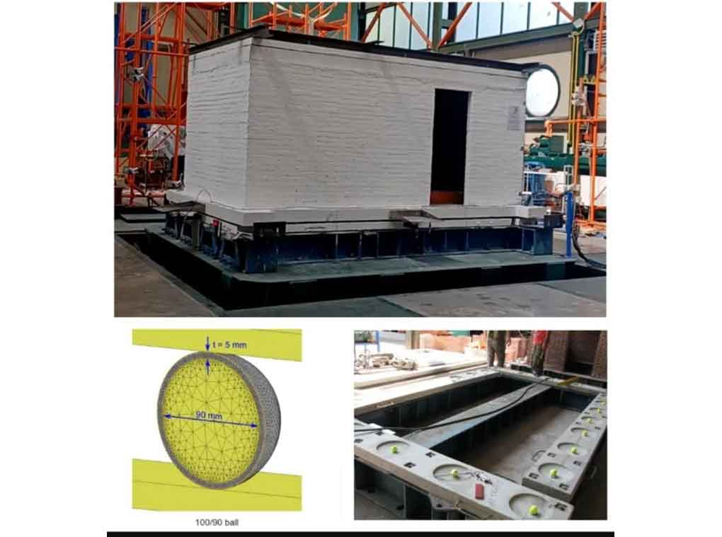 Il progetto suggerisce l’isolamento a rotolamento come alternativa a basso costo all’isolamento a scorrimento, basato sullo studio del comportamento di un sistema che comprende una sfera elastomerica che rotola su una superficie sferica di cemento, con l’obiettivo di applicare questo sistema in edifici con poca altezza nei paesi a basso reddito.