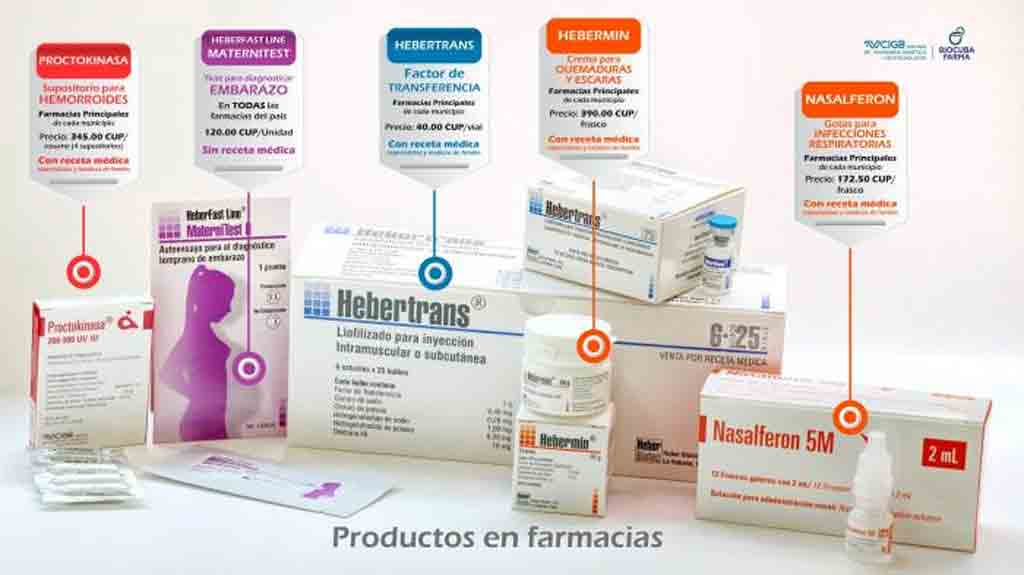 Sui suoi social media, il Centro di Ingegneria Genetica e Biotecnologia (CIGB) ha comunicato che i pazienti potranno acquistare Proctokinase, una supposta per il trattamento delle emorroidi, e Hebertrans, un fattore di diffusione per persone affette da immunodeficienza cellulare, herpes zoster, virus herpes simplex, cancro e malattie allergiche ed autoimmuni.