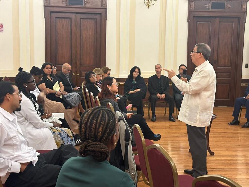 Rodríguez ha spiegato le ragioni del suo viaggio a New York come capo della delegazione cubana che parteciperà al Segmento di Alto Livello dell’80ª Sessione dell’Assemblea Generale delle Nazioni Unite e i messaggi e le proposte che Cuba porta con sé, sempre con la sua voce ferma e coerente a favore del Grande Sud.