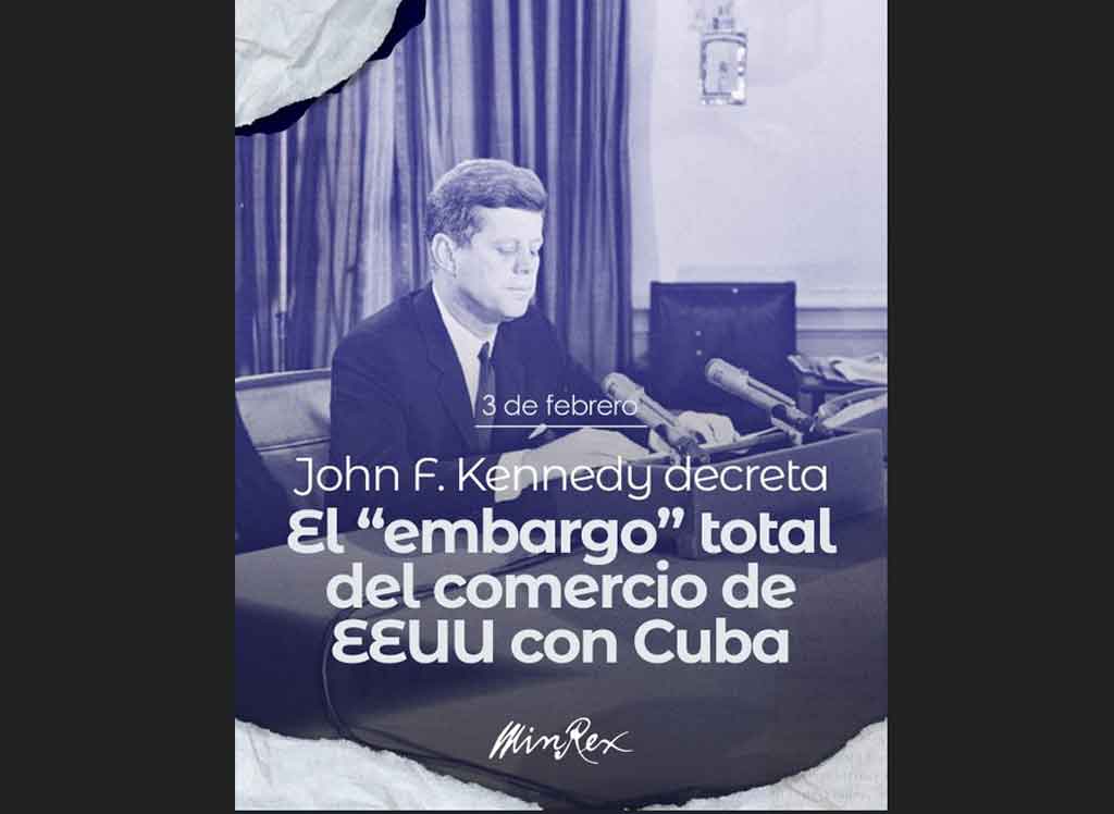 Rodríguez ha ricordato che, oggi, il 3 febbraio, ricorre il 64° anniversario del Proclama Presidenziale 3447, firmato da Kennedy nel 1962, che formalizzò “il bloqueo totale su tutti gli scambi commerciali tra Stati Uniti e Cuba”.